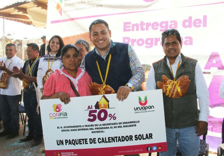 La entrega de apoyos se llevó a cabo en la Pérgola de Angahuan, en donde el alcalde de Uruapan destacó que a través de este esquema de apoyo se atiende una de las necesidades más sentidas de la población, que requiere mejorar o ampliar su vivienda, o equiparla con un calentador solar.