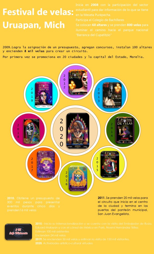 El Festival de velas nace en 2008 con el objetivo de ser una ciudad alterna a las festividades de noche de muertos en Pátzcuaro y Tzintzuntzan.