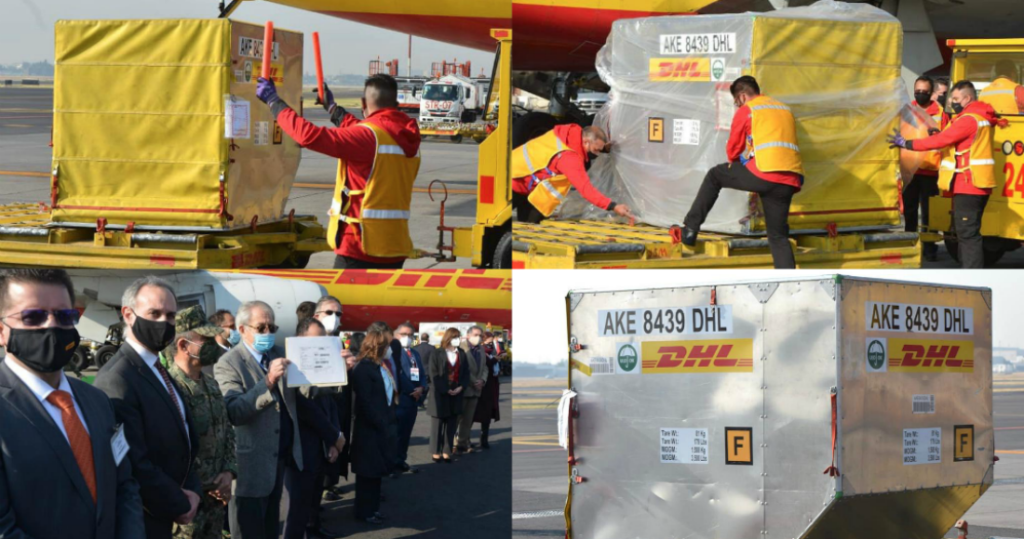 Llegó el primer lote de la vacuna de Pfizer y BioNTech para combatir el Covid-19. Fue alrededor de las nueve de la mañana, tiempo de la ciudad de México, cuando aterrizó el avión de la empresa DHL que trae las primeras dosis.