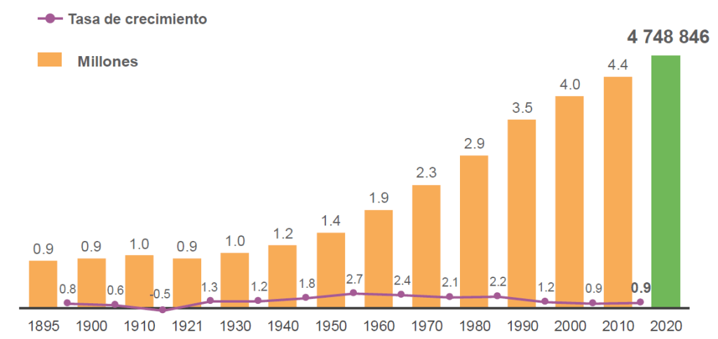 POBLACIÓN TOTAL Y TASA DE CRECIMIENTO PROMEDIO ANUAL, 1895-2020