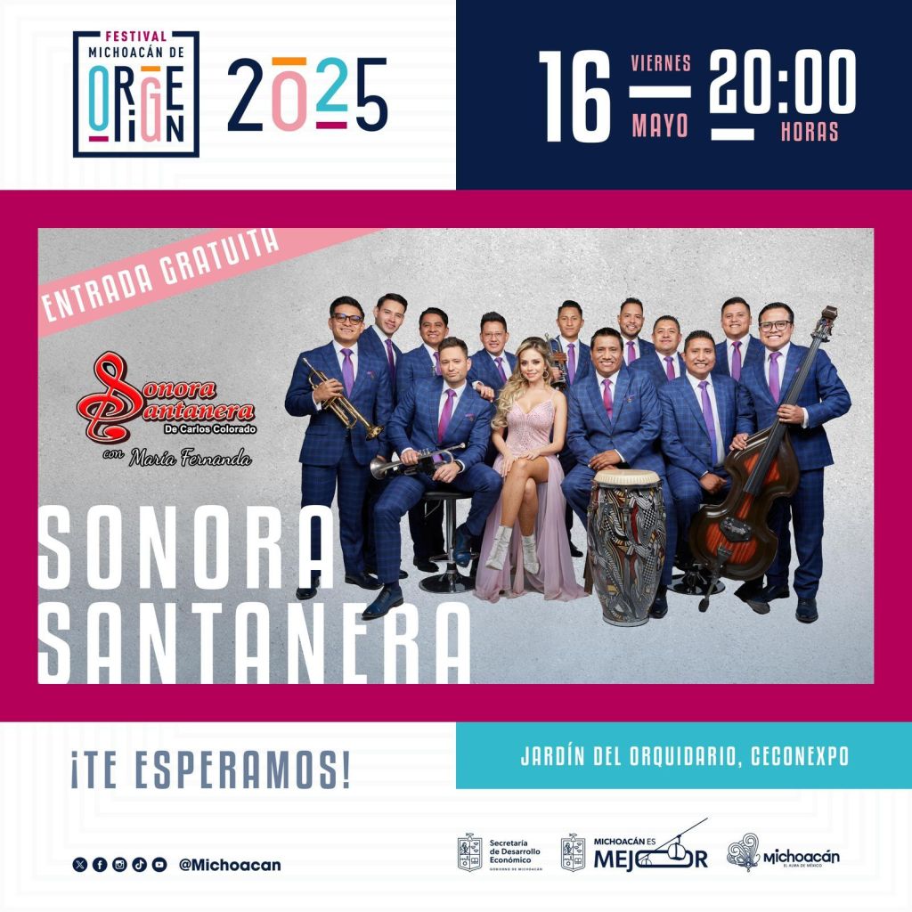 Morelia, Michoacán, 14 de mayo de 2025.- Este fin de semana será el último del Festival Michoacán de Origen (FMO), que cerrará con los conciertos estelares de María José, La Sonora Santanera, Raúl Di Blasio, Alisun y Mar Solís.