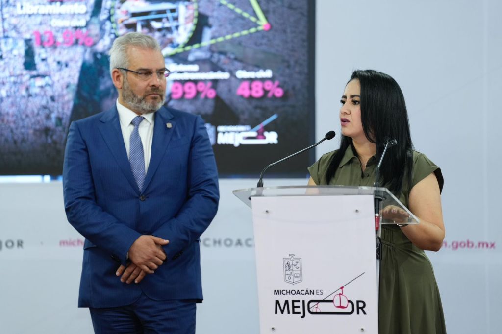 Morelia, Michoacán, 26 de Mayo de 2025.- El proyecto del teleférico en Uruapan avanza con paso firme, con un progreso general del 84 por ciento, informó la secretaria de Desarrollo Urbano y Movilidad (Sedum), Gladyz Butanda Macías, en conferencia de prensa encabezada por el gobernador Alfredo Ramírez Bedolla.