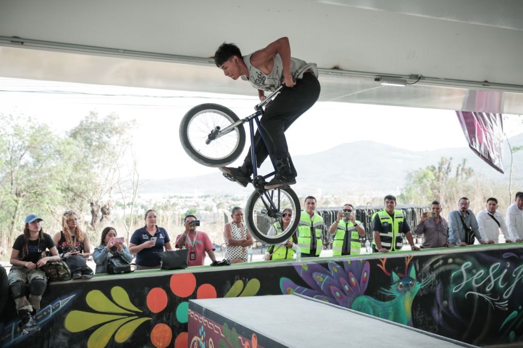 El secretario de SCOP, Rogelio Zarazúa Sánchez, destacó que el bajopuente Paso Catrinas, está más vivo que nunca, ofreciendo a los jóvenes un espacio ideal para la convivencia y la competencia sana. Los primeros lugares de cada categoría de deporte extremo (skate, roller y bicicleta) serán premiados con unos patines, patineta y bicicleta nueva, respectivamente.