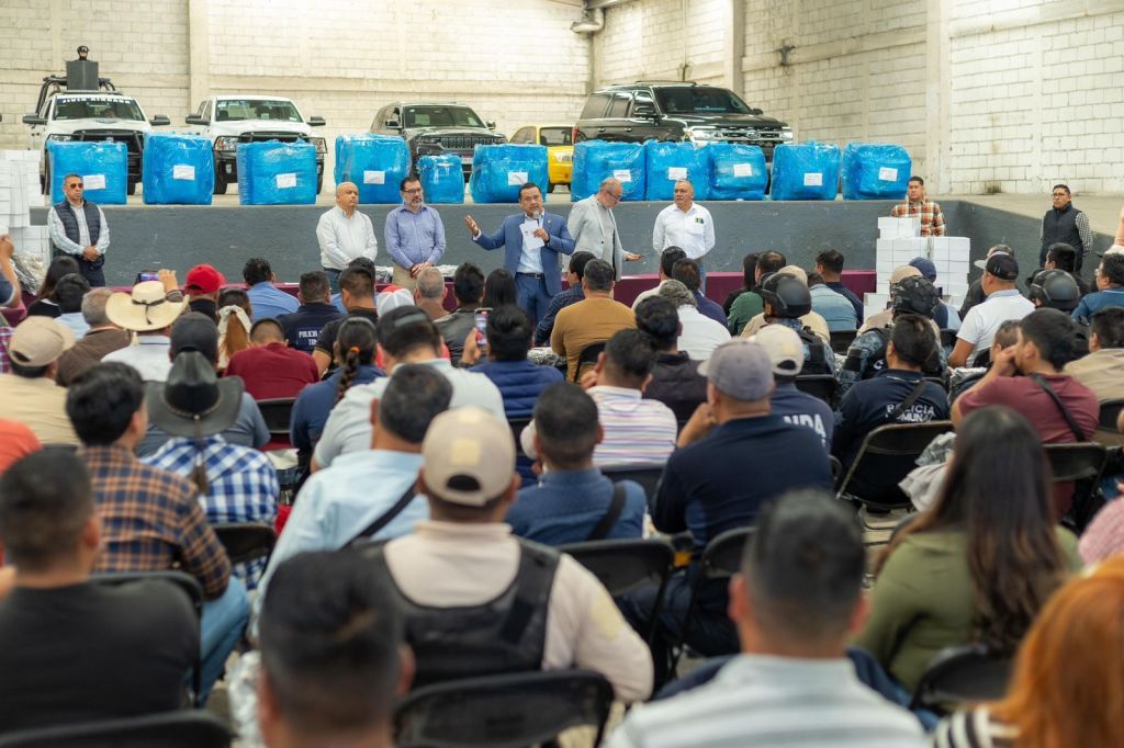 Acompañado por el secretario de Seguridad Pública, Juan Carlos Oseguera Cortés, el encargado de la política interna, a nombre del gobernador Alfredo Ramírez Bedolla, entregó paquetes con botas, camisas y pantalones especialmente diseñados para sus labores de seguridad, a las y los representantes de los cuerpos de vigilancia de las comunidades.