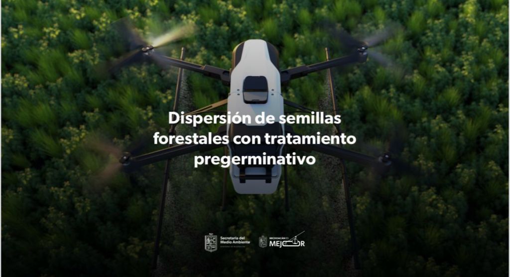Morelia, Michoacán, 21 de agosto de 2025.- Como parte de la campaña de reforestación 2025 “Sembremos el futuro”, arrancó la dispersión de 200 miles de semillas de árbol pregerminadas en zonas afectadas por incendios forestales, mediante el uso de drones, informó el gobernador Alfredo Ramírez Bedolla.