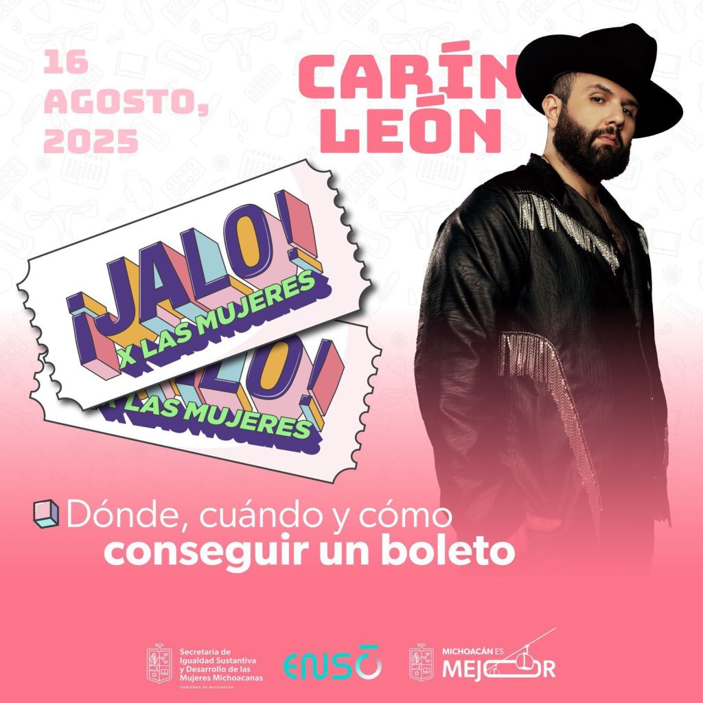 Morelia, Michoacán, 31 de julio de 2025.- La secretaria de Igualdad Sustantiva y Desarrollo de las Mujeres Michoacanas, Alejandra Anguiano González, te recuerda el mecanismo de canje de boletos para el concierto de Carín León el próximo 16 de agosto en el Jalo x las Mujeres, con el que se busca realizar una colecta masiva de productos de gestión menstrual para combatir la pobreza menstrual en las comunidades más alejadas del estado.