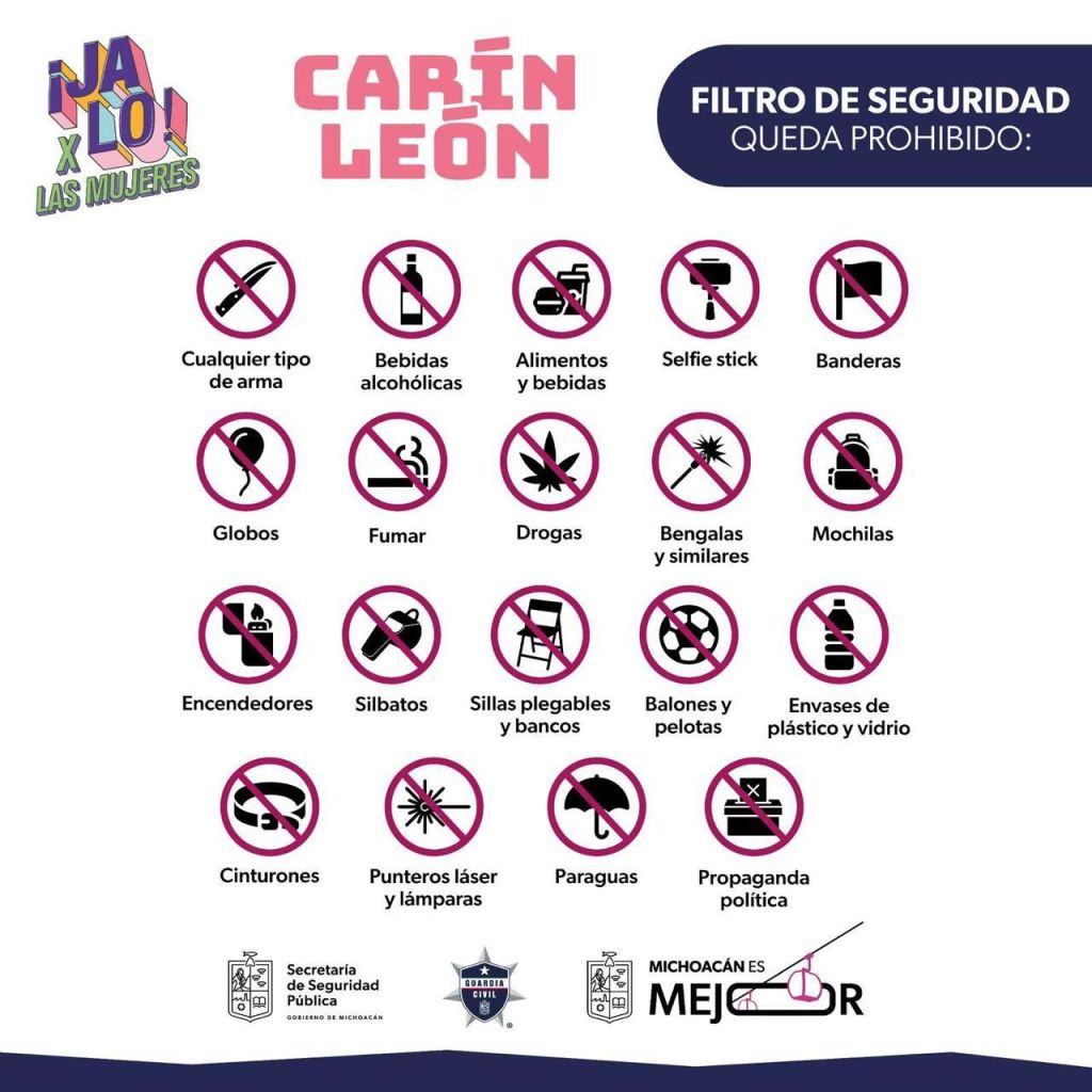 Se invita a llegar con anticipación, respetar las indicaciones y cumplir las medidas de seguridad. Está prohibido ingresar con cinturones, bebidas alcohólicas, alimentos, balones, envases de vidrio o plástico, paraguas, mochilas, bengalas, encendedores, bastones para celulares, armas, sillas plegables, globos, cigarros, drogas, silbatos, banderas, punteros láser o lámparas.