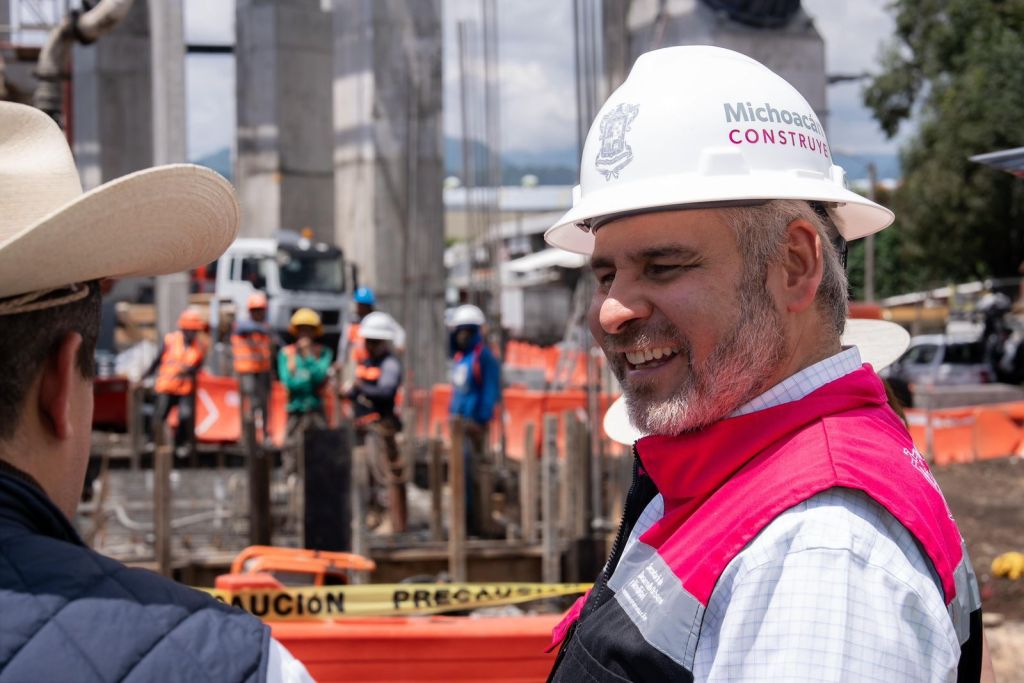 Uruapan, Michoacán, 26 de agosto de 2025.- El gobernador Alfredo Ramírez Bedolla supervisó los trabajos de construcción del teleférico de Uruapan donde constató avances importantes para su próxima puesta en operación al servicio de la ciudadanía y sector turístico.