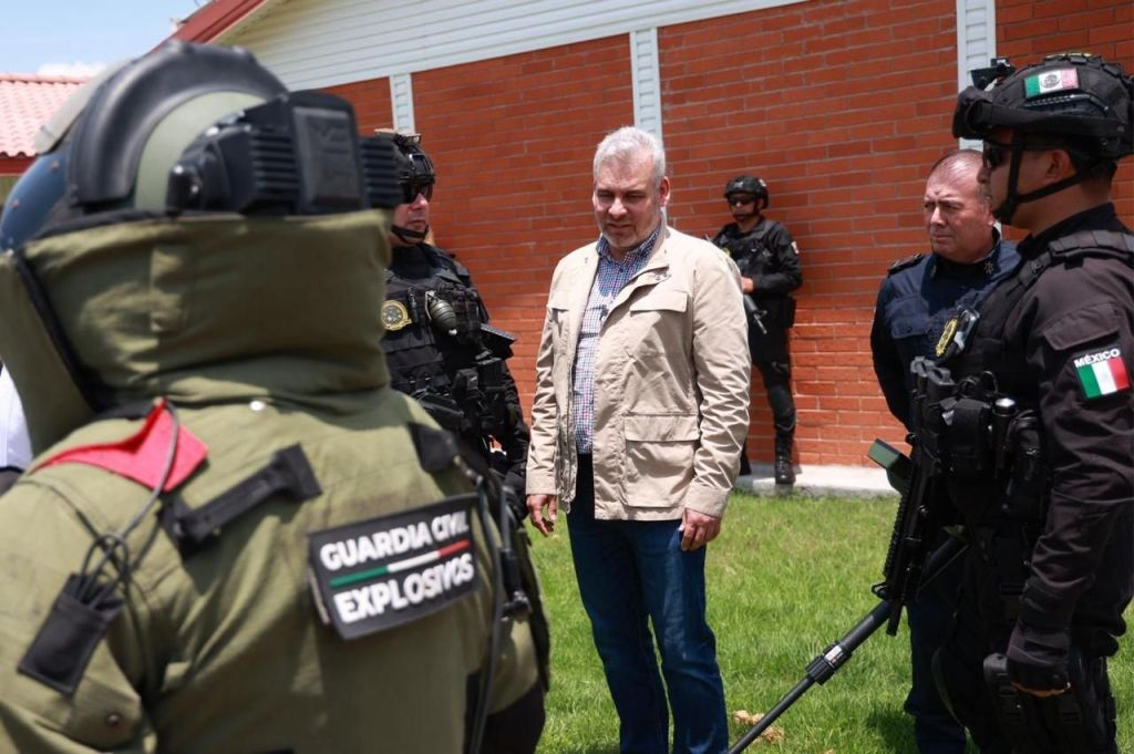 Morelia, Michoacán, 29 de agosto de 2025.- El gobernador Alfredo Ramírez Bedolla verificó el equipo antibombas del Agrupamiento Especializado en Artefactos Explosivos y Materiales Peligrosos de la Guardia Civil, una fuerza de clase mundial, profesional y altamente capacitada para atender emergencias en Michoacán.