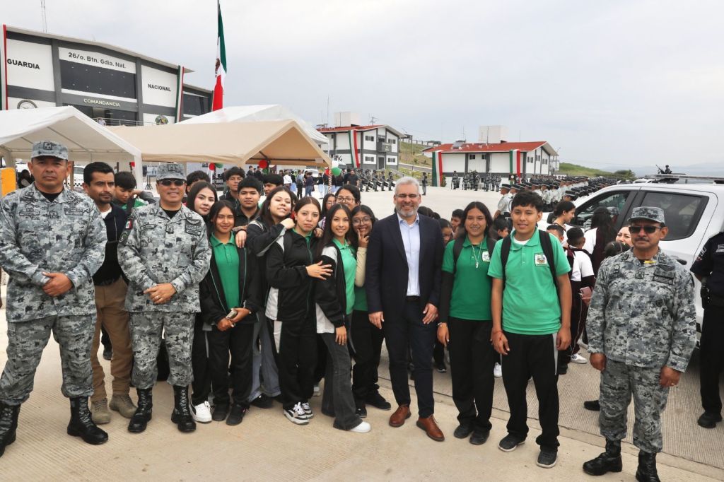 Tarímbaro, Michoacán, 9 de septiembre de 2025.- El gobernador Alfredo Ramírez Bedolla inauguró el 26 Batallón y una compañía de la Guardia Nacional en el municipio de Tarímbaro, para reforzar la seguridad en la zona conurbada de Morelia, el corredor Cuitzeo-Zinapécuaro, y las comunidades aledañas al lago de Cuitzeo.