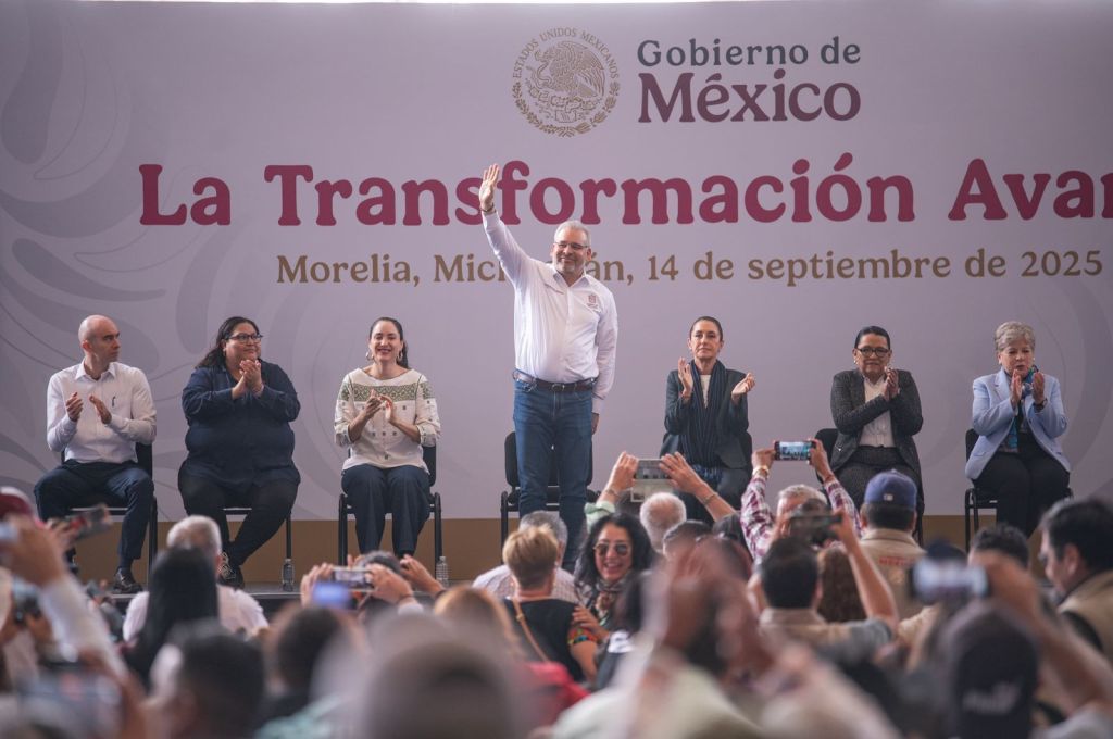 Morelia, Michoacán, 14 de septiembre de 2025.- Bajo el liderazgo de la presidenta Claudia Sheinbaum Pardo, Michoacán avanza en materia educativa e infraestructura, destacó el gobernador Alfredo Ramírez Bedolla, al acompañarla en su informe regional que presentó en Morelia ante miles de personas.