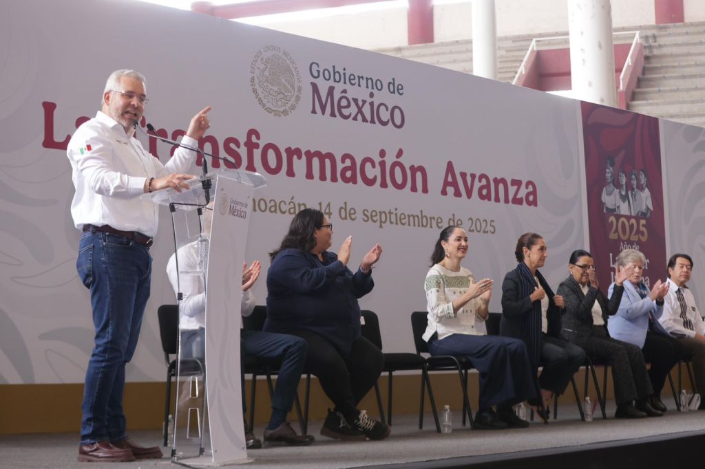 El mandatario agradeció su apoyo para que los docentes reciban salarios completos y puntuales, y convertirse en el estado del país que más avanzó en el combate al rezago educativo. “Así es como hemos sacado adelante la educación en Michoacán, con una mujer científica, como la presidenta”.