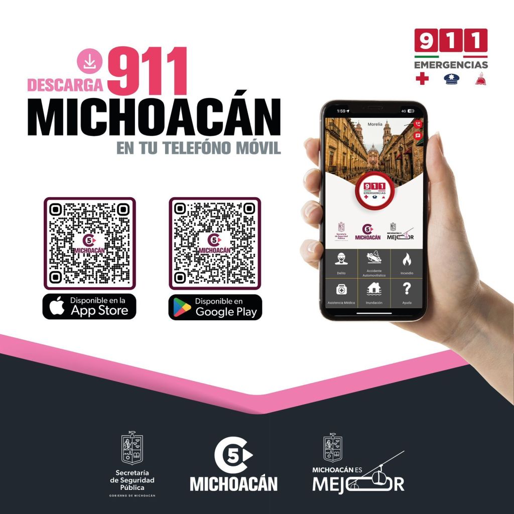 Con la aplicación gratuita 911 Michoacán, se puede compartir ubicación en tiempo real e imágenes de la emergencia o reporte que se presenta, lo que facilita la llegada oportuna de unidades de seguridad, salud o protección civil, convirtiéndola en un recurso clave para su protección y bienestar.