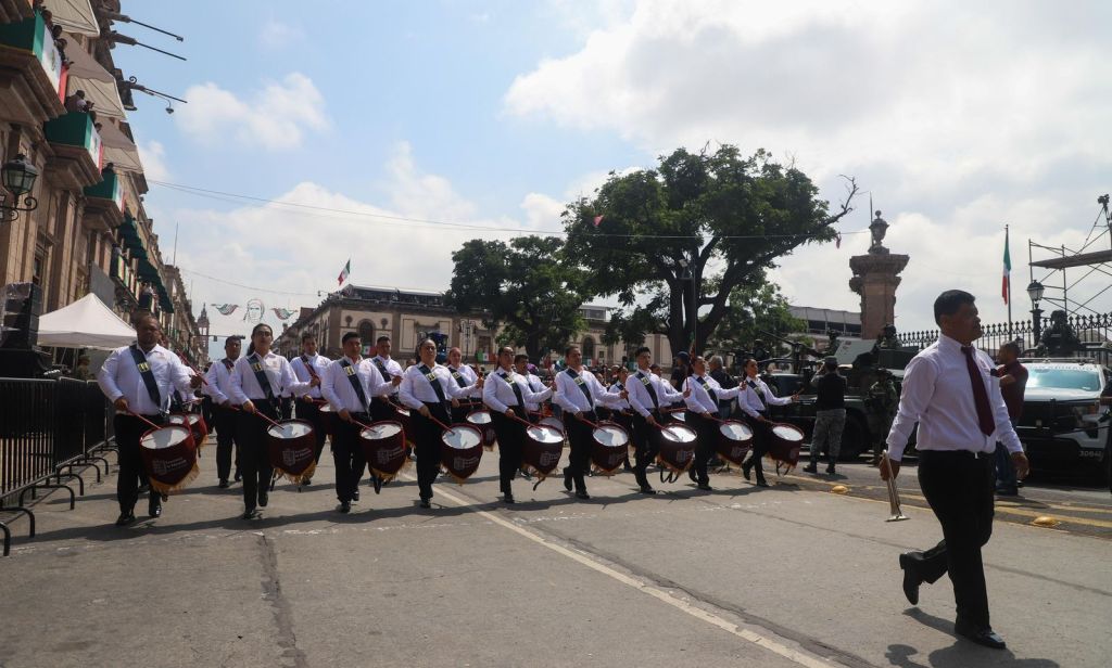 Estudiantes y personal del Instituto Tecnológico de México fueron los encargados de abrir el desfile en honor al hijo de Morelia por el que la ciudad lleva su nombre; les siguieron trabajadores del Ayuntamiento de Morelia y alumnos de la Escuela Secundaria Federal No. 1 José María Morelos.