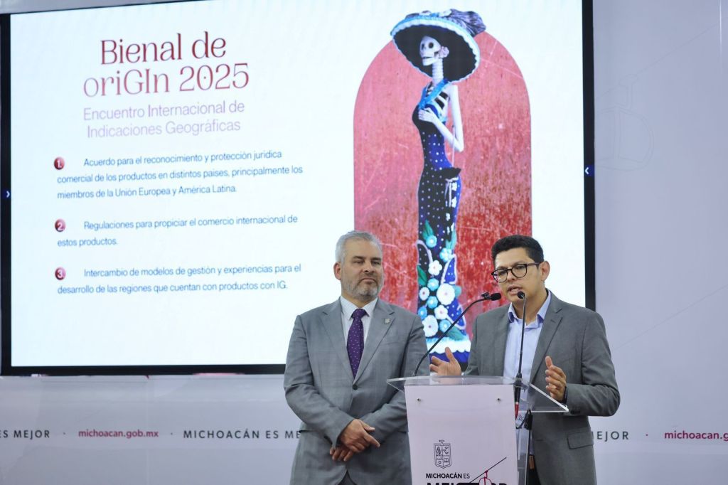 Morelia, Michoacán, 6 de octubre de 2025.- El próximo miércoles iniciará en la capital michoacana la Bienal de oriGIn, encuentro internacional de indicaciones geográficas que espera la participación de más de 600 asistentes, entre socios, productores, consejos reguladores y asociaciones de 40 países, así lo señaló el gobernador Alfredo Ramírez Bedolla.