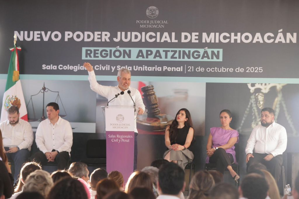 “Descentralizamos el Poder Judicial”, destacó el mandatario, quien detalló que la ciudadanía de la región Apatzingán ya no tendrá que trasladarse hasta Morelia para acceder a la justicia, como ya también ocurre en las zonas de La Piedad, Zamora, Zitácuaro, Uruapan y Morelia.