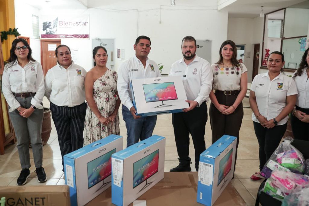 Durante la visita se entregó equipamiento y kits de gestión menstrual destinados al fortalecimiento del Centro LIBRE de Coahuayana, una acción que forma parte del compromiso permanente para ampliar la red de apoyo y mejorar los servicios dirigidos a mujeres y niñas del municipio. A la par, el encargado de la política interna también supervisó los daños registrados en el Jardín de Niños “Jonas Salk”.