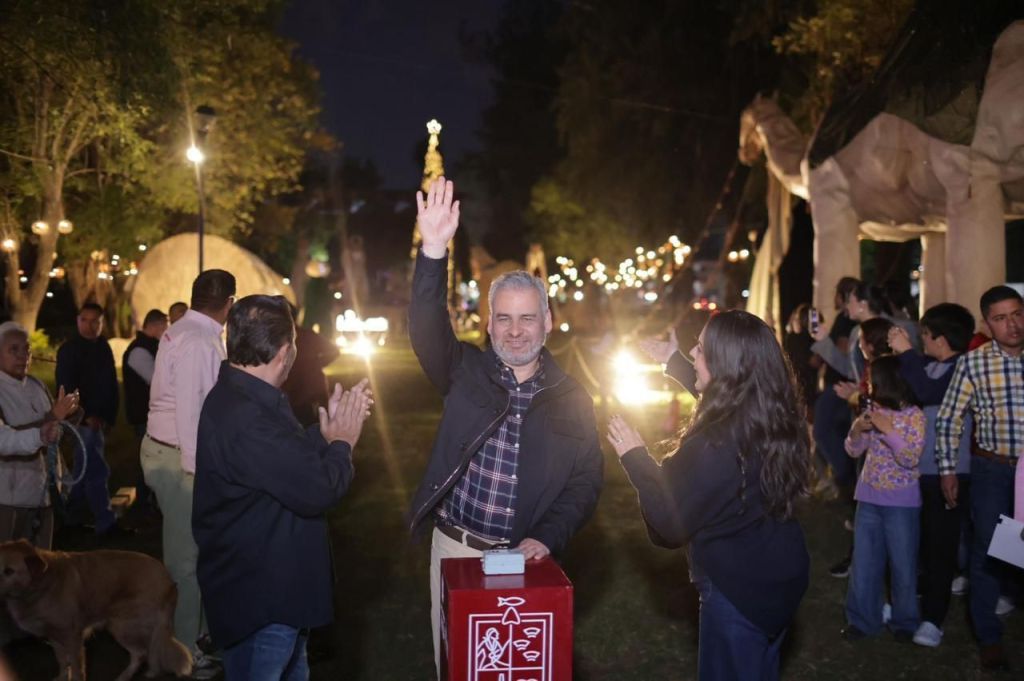 Para dar inicio, el mandatario estatal, acompañado del secretario de Turismo, Roberto Monroy García, funcionarios estatales y cientos de asistentes, realizó el encendido de las luces navideñas que iluminan las diversas áreas, como la pista de hielo, el árbol de Navidad y el nacimiento monumentales, así como una alta variedad de juegos mecánicos.
