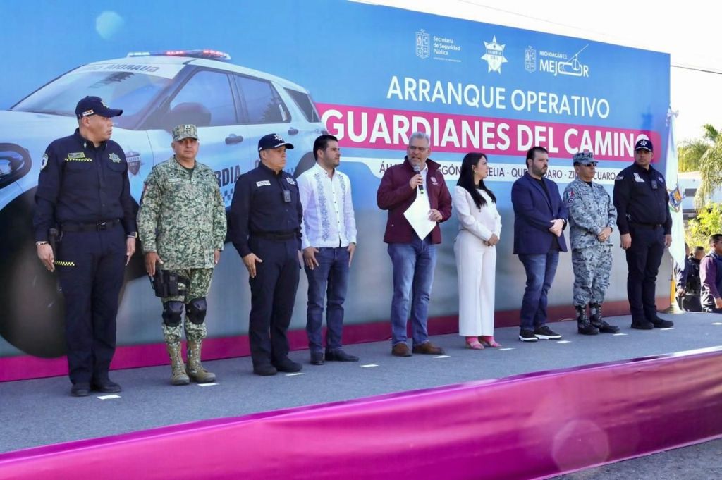 Álvaro Obregón, 20 de diciembre de 2025.- Para reforzar la seguridad en la red carretera de la zona aledaña al Aeropuerto de Morelia, el gobernador Alfredo Ramírez Bedolla puso en marcha el operativo interinstitucional “Guardianes del Camino”, donde participan agentes de la Guardia Civil, Guardia Nacional, Policía de Morelia y de los municipios de Álvaro Obregón, Queréndaro y Zinapécuaro, quienes operarán las 24 horas del día.