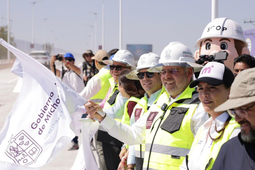 Morelia, Michoacán, 19 de febrero de 2026.- Luego de cinco meses de construcción, el gobernador Alfredo Ramírez Bedolla abrió a la circulación el puente norte del distribuidor vial Eréndira, ubicado en las inmediaciones del Mercado de Abastos, con el cual, esta obra de infraestructura tiene ya flujo vehicular en ambos sentidos para beneficio diario de 392 mil personas.
