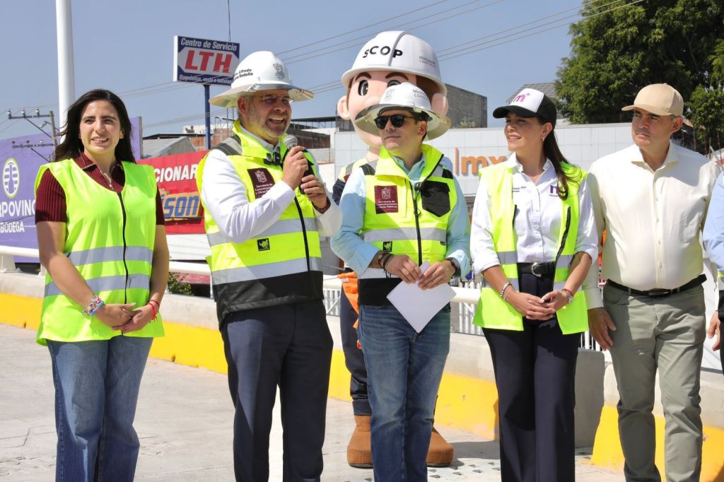 La obra del distribuidor vial contempla dos puentes con tres carriles cada uno, y cuatro carriles más a nivel. Estos últimos se habilitarán próximamente, informó el mandatario, quien destacó que para la edificación se destina una inversión estatal de 442 millones de pesos, sin necesidad de contratar deuda pública.