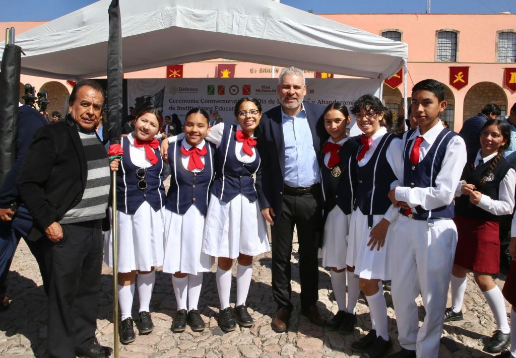 También, el jefe policial de Coordinación Estatal de la Guardia Nacional, Miguel Ángel Aragón Vázquez; el fiscal de Michoacán, Carlos Torres Piña; el alcalde de Morelia, Alfonso Martínez Alcázar; la secretaria de Educación del Estado, Gabriela Molina Aguilar; el coordinador de Seguridad Vial, Luis Roberto Rosiles; la directora del Instituto de Educación Media Superior y Superior, Mariana Sosa Olmeda; y estudiantes de secundaria y de media superior.