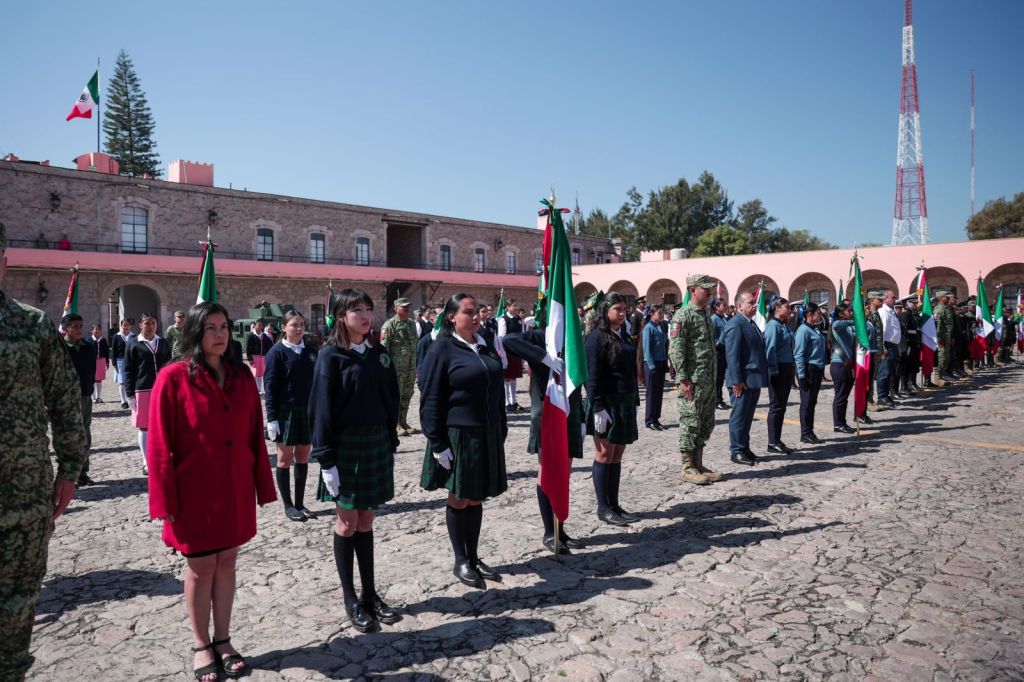 El gobernador llamó a estudiantes de secundaria y media superior participantes en la ceremonia a defender los símbolos patrios, a través de una conducta ejemplar, dedicación al estudio y compromiso con la integridad. “Porque el construir juntos una nación más justa y unida, honramos de la a nuestra bandera y a México”, subrayó.