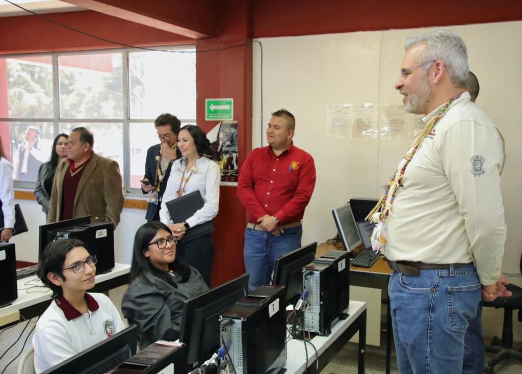 Acompañaron al gobernador la secretaria de Educación, Gabriela Molina Aguilar; la directora general del Instituto de Educación Media Superior y Superior, Mariana Sosa Olmeda; y el director de Gobierno Digital, Juan Pablo Granados.