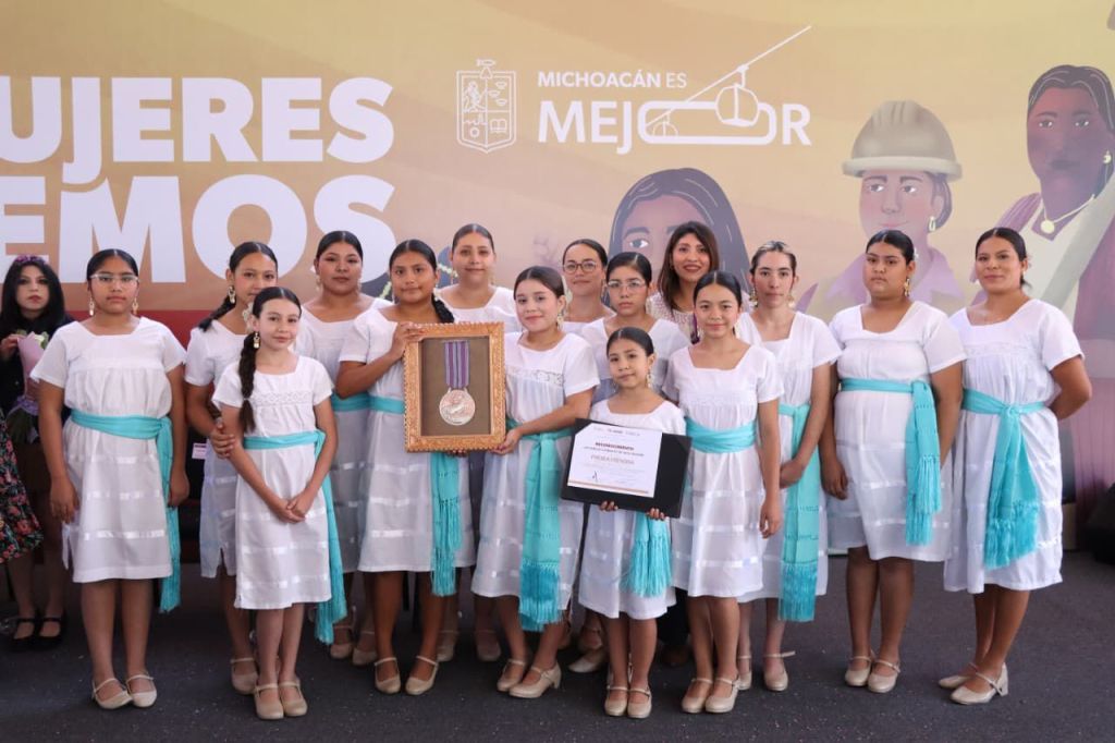 Morelia, Michoacán, 11 de marzo de 2026.- El conjunto Las Mirlas, conformado por niñas y jóvenes de Apatzingán dedicadas a la música tradicional de arpa grande, ha sido galardonado con la Presea Eréndira 2026. El Gobierno de Michoacán, a través de la Secretaría de Igualdad Sustantiva y Desarrollo de las Mujeres Michoacanas (Seimujer), otorgó este reconocimiento en la categoría de colectivos que promueven y defienden los derechos de las mujeres en situación de vulnerabilidad histórica.