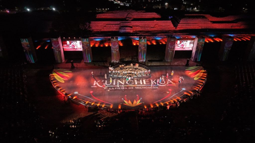 Tzintzuntzan, Michoacán, 14 de marzo de 2026.- Las fiestas patronales de los pueblos originarios de Michoacán cobraron vida en la quinta edición de la K’uínchekua, inaugurada por el gobernador Alfredo Ramírez Bedolla y la secretaria de Turismo federal, Josefina Rodríguez Zamora en las Yácatas del Pueblo Mágico de Tzintzuntzan: el corazón arqueológico del estado.