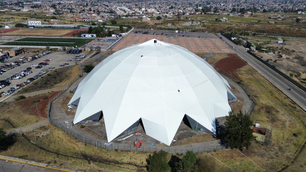 Los trabajos incluyeron la reparación de la membrana arquitectónica, con la sustitución de 26 triángulos opacos del domo principal y 16 traslúcidos en los claros de luz, devolviendo la funcionalidad y seguridad a este espacio.