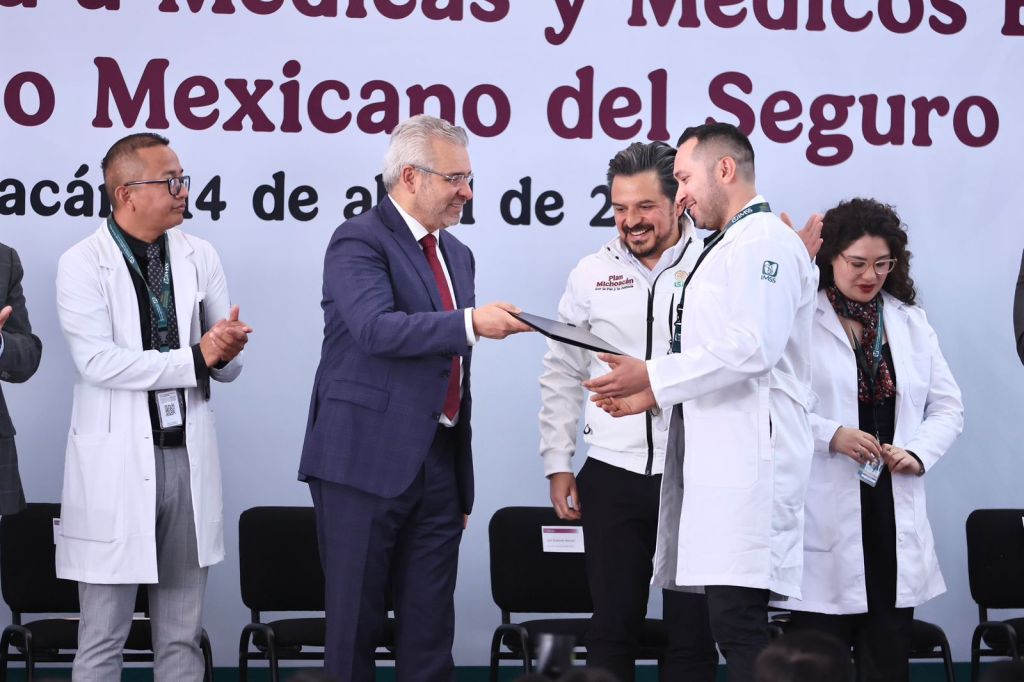 Durante la entrega de plazas a 407 médicas y médicos especialistas del IMSS, el mandatario destacó que el nuevo hospital, que estará ubicado en el poniente de Morelia, se edifica sobre una superficie de 60 mil metros cuadrados, de los cuales, 45 mil fueron donados por el Gobierno de Michoacán y 15 mil por el Ayuntamiento de Morelia, lo que elevará la capacidad y la calidad de la atención médica para las personas derechohabientes.