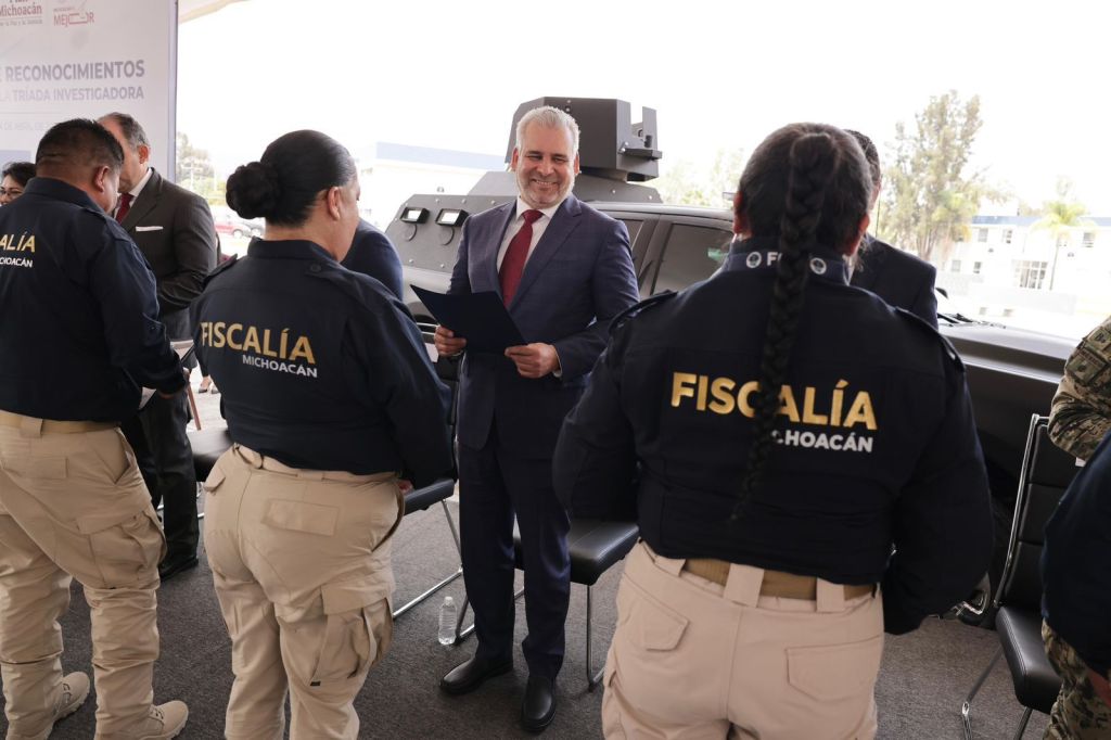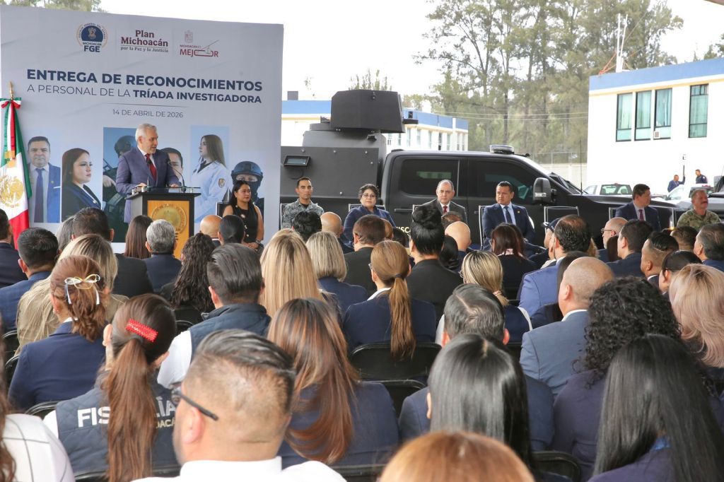 Morelia, Michoacán, 14 de abril de 2026.- De acuerdo con el estudio «Radiografía de la Impunidad 2024», presentado por la organización no gubernamental México Evalúa, Michoacán se ha posicionado como el referente nacional en la resolución de delitos y la reducción de la brecha de impunidad en el país, señaló el gobernador Alfredo Ramírez Bedolla al encabezar la entrega de reconocimientos a peritos, policías de investigación y ministerios públicos de la Fiscalía General del Estado.