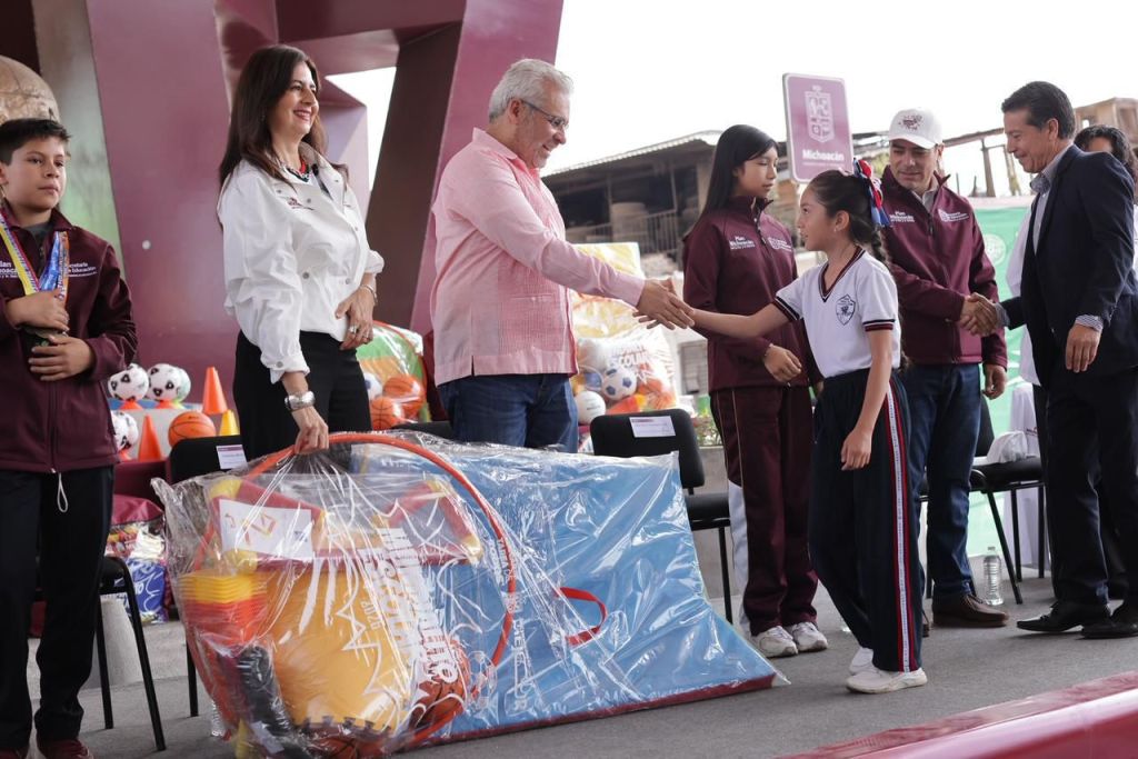 La secretaria de Educación, Gabriela Molina Aguilar, expuso que la entrega de este material deportivo se traduce en más actividades para las maestras y maestros, que representan el corazón del sistema educativo. Informó que en la región Uruapan se beneficiará a estudiantes de 12 municipios.